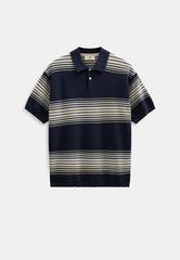 Seb Stripe Short Sleeve Knitted Polo Donkerblauw